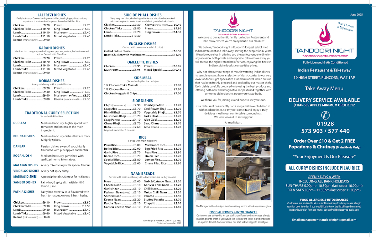 The menu at Tandoori Night Runcorn offers a comforting and approachable selection of South Asian dishes that suit a variety of dining occasions, whether it’s a relaxed dinner with family or an enjoyable takeaway meal. You’ll find a thoughtful balance of traditional Indian favourites and flavoursome recipes that come together in a casual, welcoming setting.